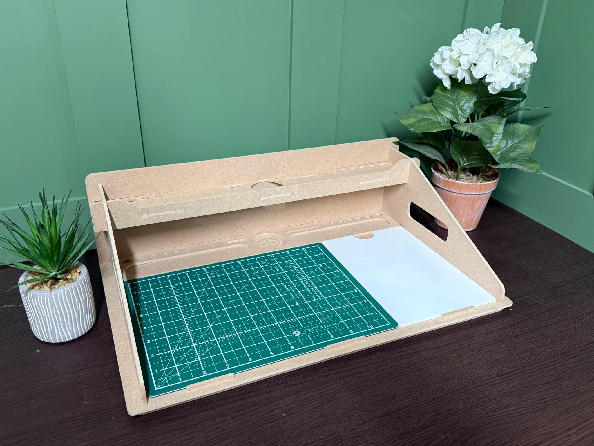 A great gift for the model with an A4 cutting mat and also a removable acrylic panel to mix your paints on.
