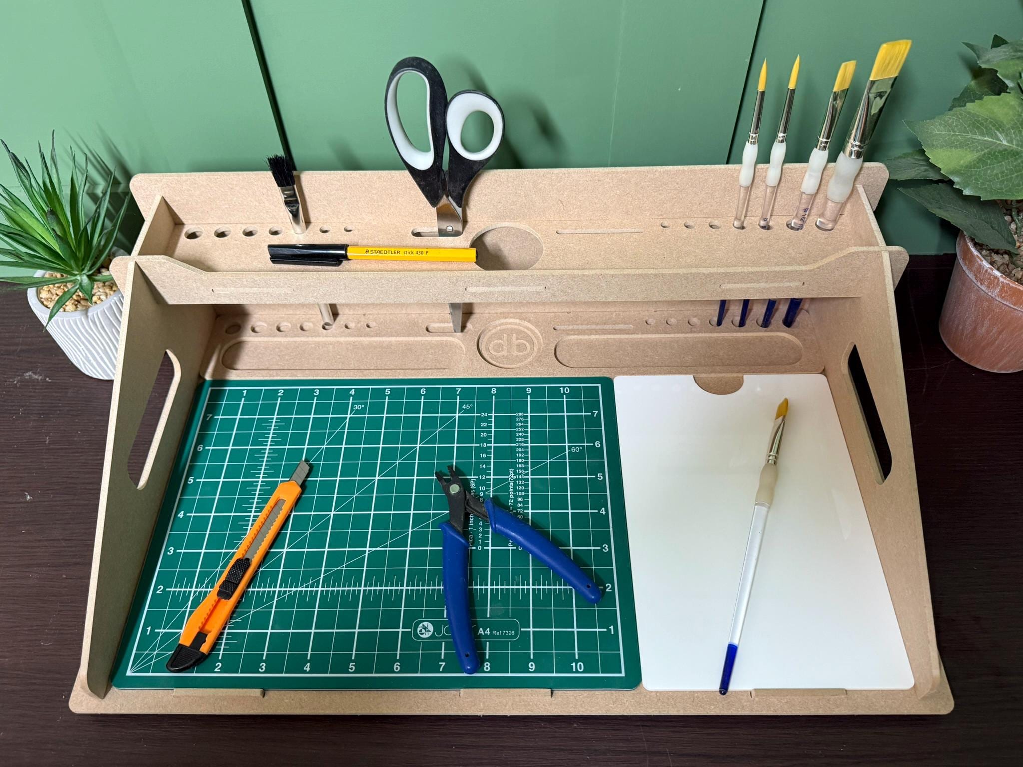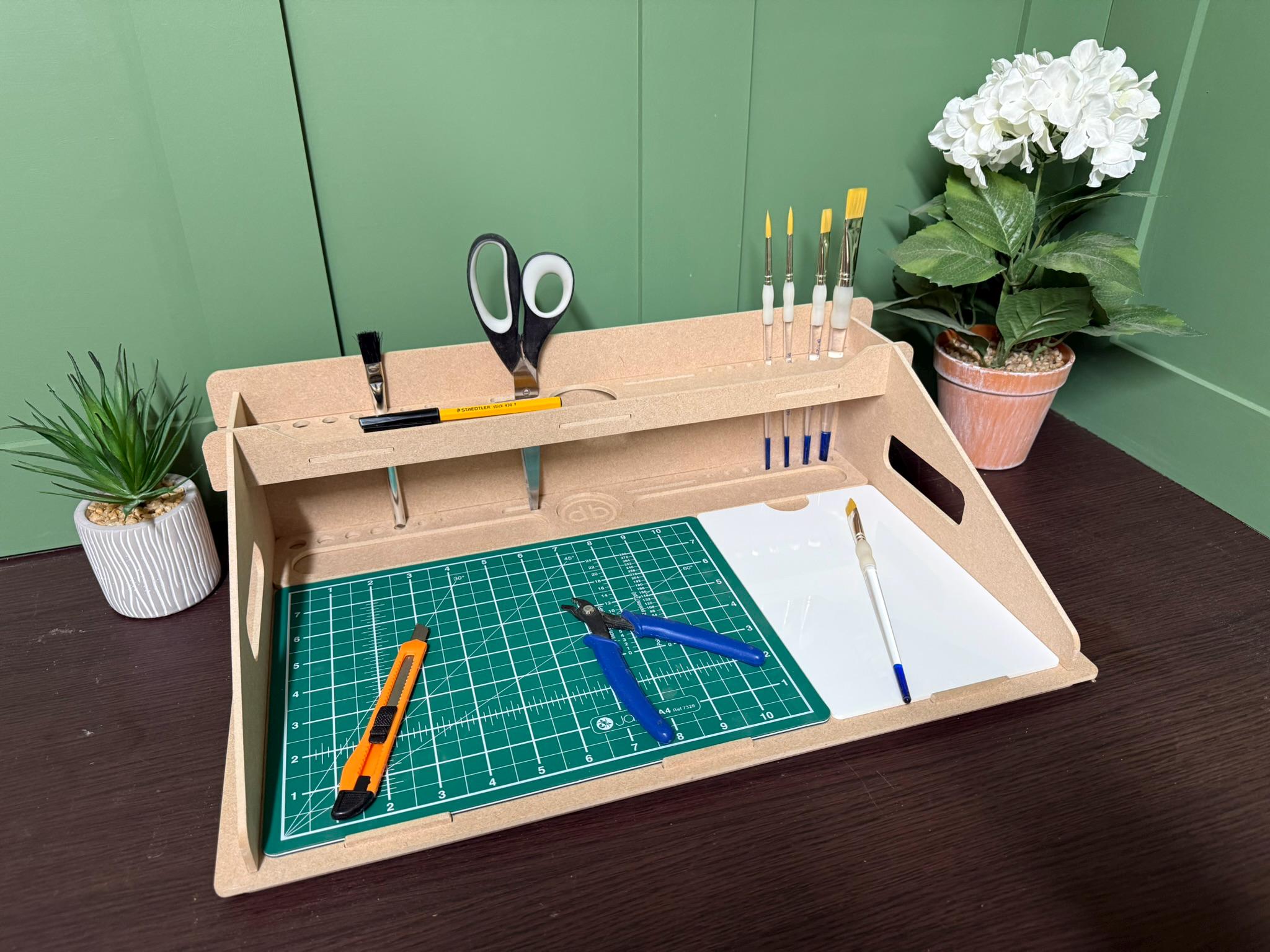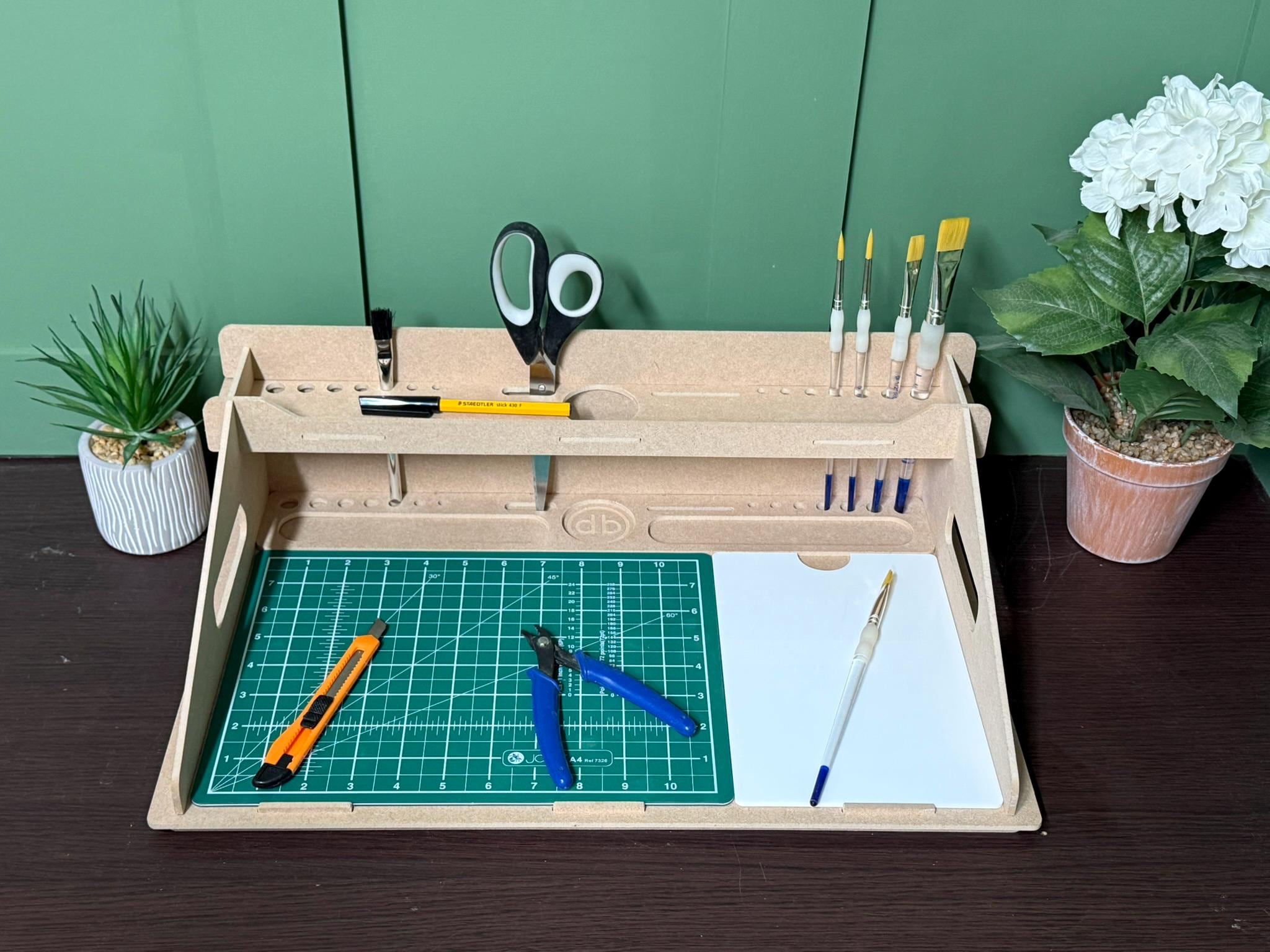 The Workstation simply slots together, made from 4mm premium MDF, it can also be painted by the owner.