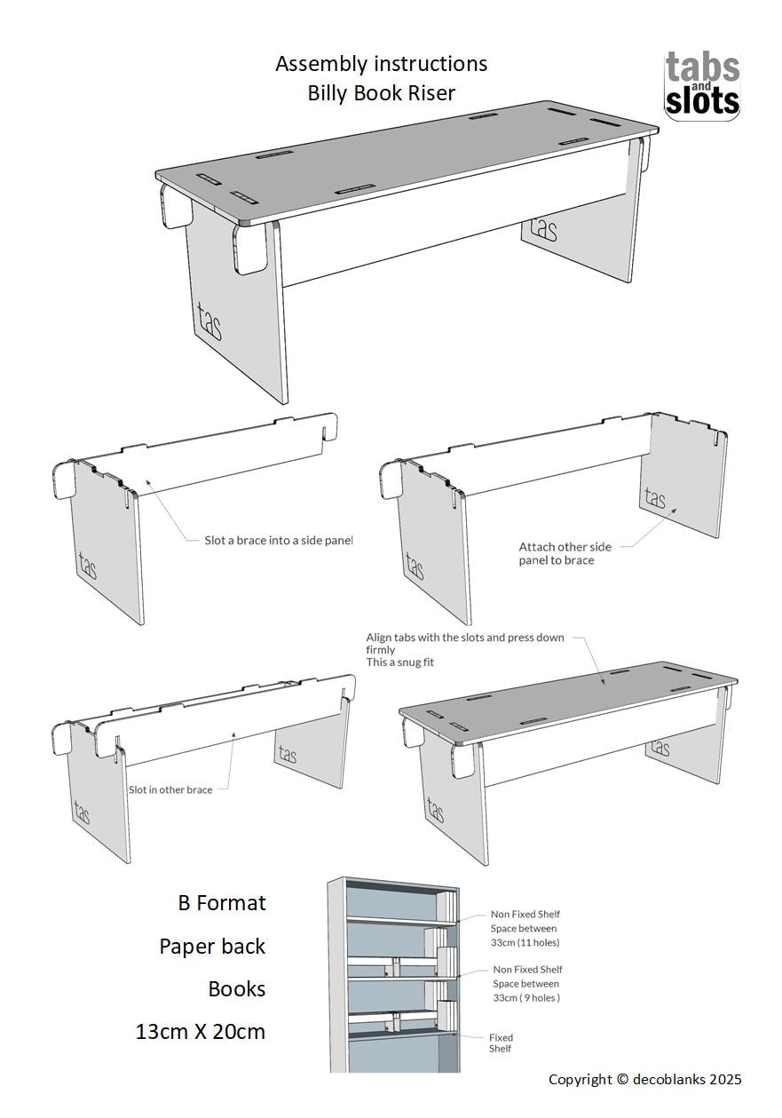 Book Riser Stand insert for the BILLY Bookcase that is 80cm x 28cm x 101/202cm